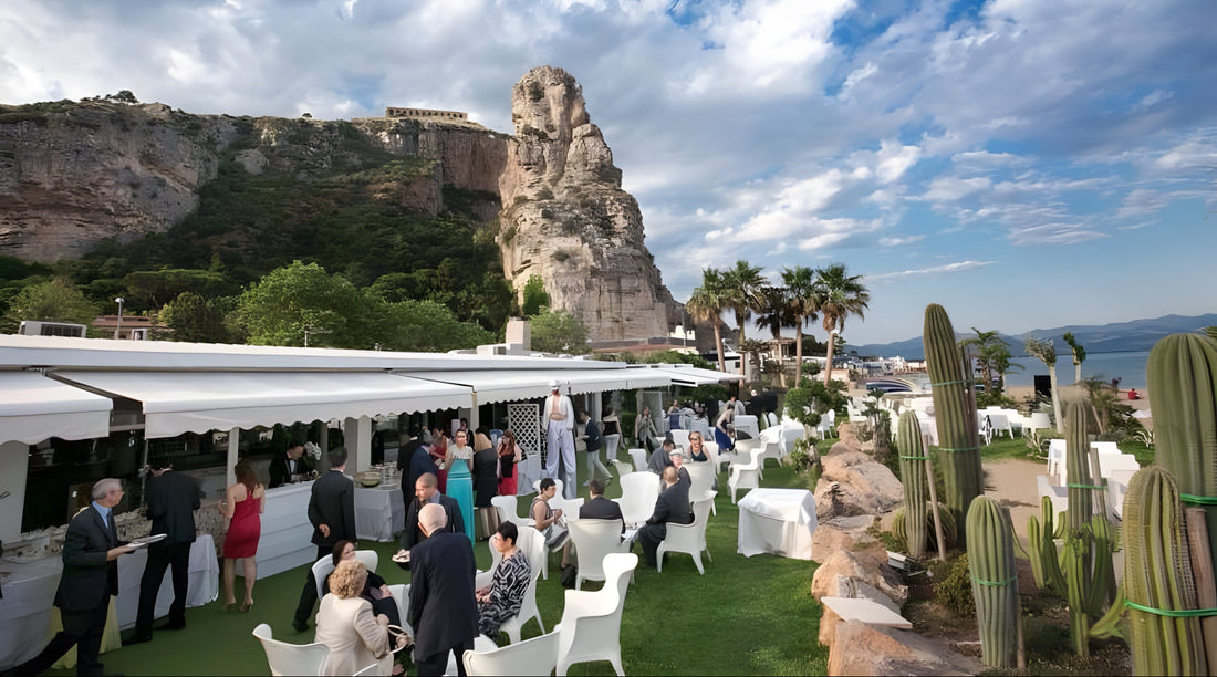 Seduti nell'elegante veranda in riva al mare oppure nel giardino allestito direttamente sulla sabbia, ci si trova dinnanzi alla spettacolare veduta del Golfo di Gaeta sotto il Tempio di Giove Anxur, fra le colline e l'azzurra distesa del Mare.